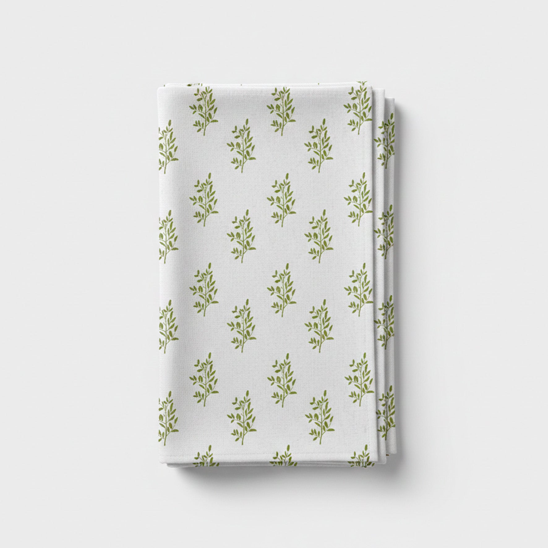 Table runner printed with a green, original artwork on natural, white fabric using OEKO-TEX® certified inks. Available in three sizes.