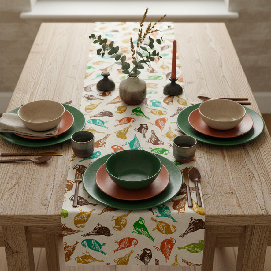 Sparrow Multicolour on Beige Table Runner